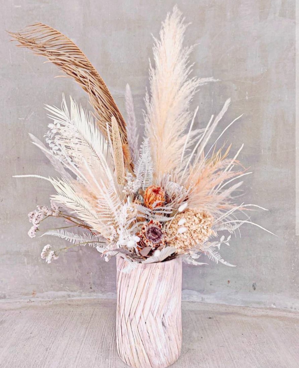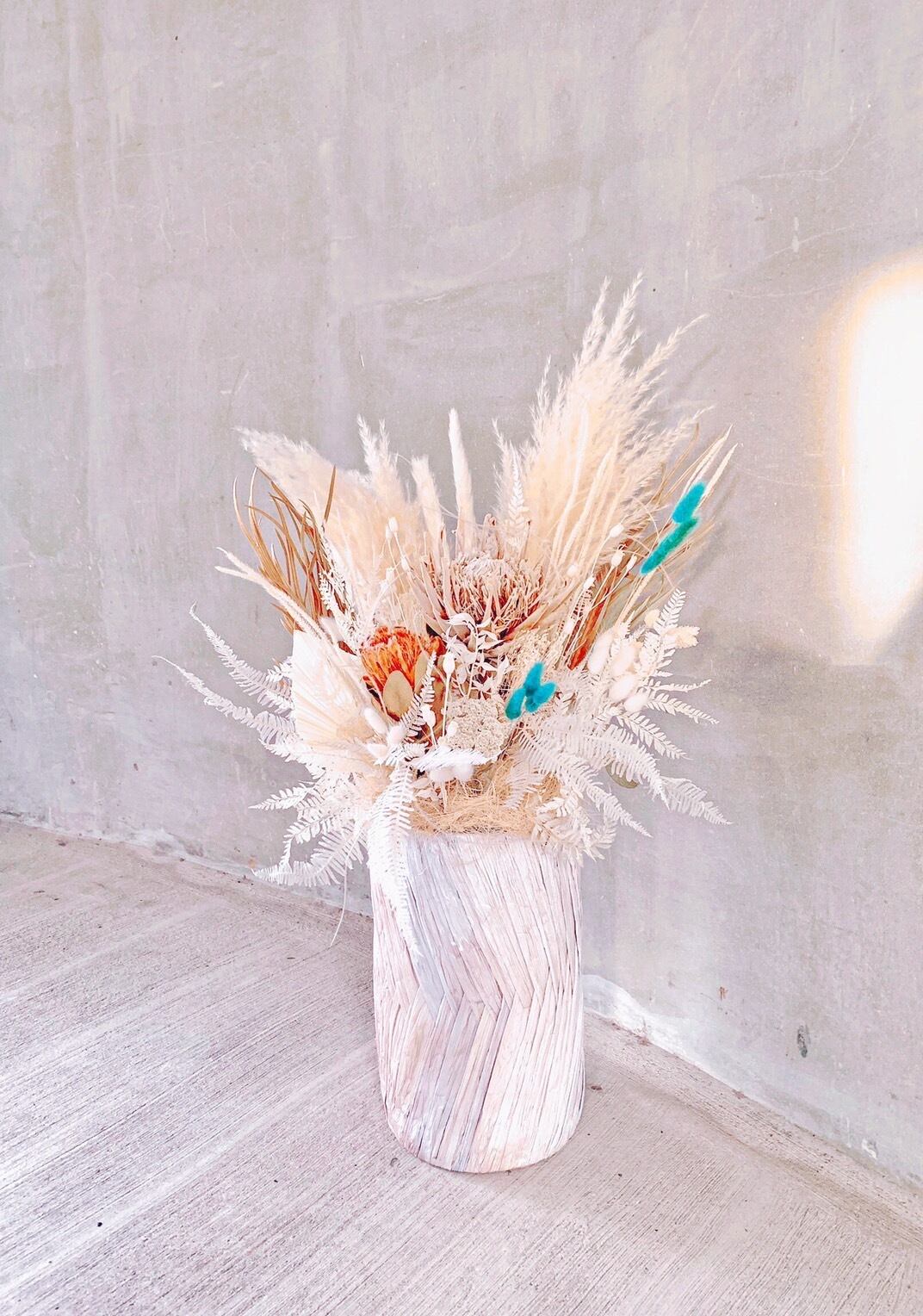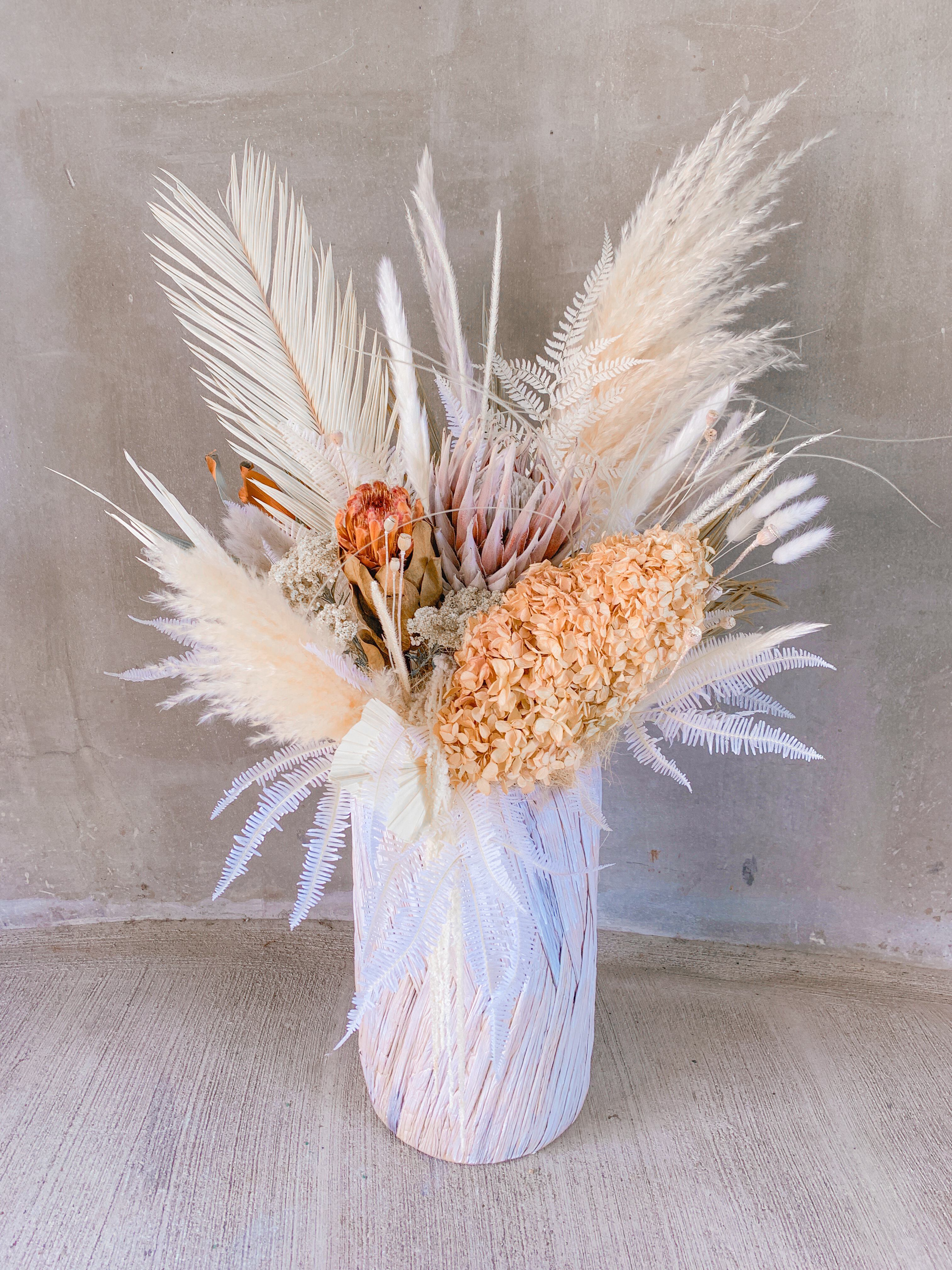 ※メインとして入っている丸い植物(キングプロテア 系)+ベージュのパンパスは必ず入ります。